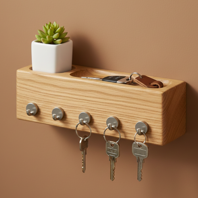 Organiseur mural d'entrée en bois – Optimisez votre espace d'accueil avec ce rangement mural élégant et fonctionnel. Conçu en bois massif, cet organiseur combine esthétique naturelle et praticité. Parfait pour ranger clés, courrier, téléphone et accessoires du quotidien, il transforme votre entrée en espace organisé et accueillant. Son design épuré s'adapte à tous les styles de décoration intérieure. Installation murale simple et discrète. Un incontournable pour ceux qui valorisent l'ordre et le style.